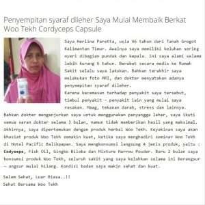 Woo Tekh Cordyceps Capsule adalah produk kesehatan dari ramuan tradisional alami (natural) yang dikemas secara modern dengan kualitas tetap terjaga, diformulasikan khusus untuk mengobati semua masalah penyakit paru-paru atau penyakit pernafasan, seperti TBC, bronkitis, radang pau-paru, dan sebagainya dengan cepat, efektif, dan aman tanpa efek samping ( Spesialis Obat Paru-paru ).